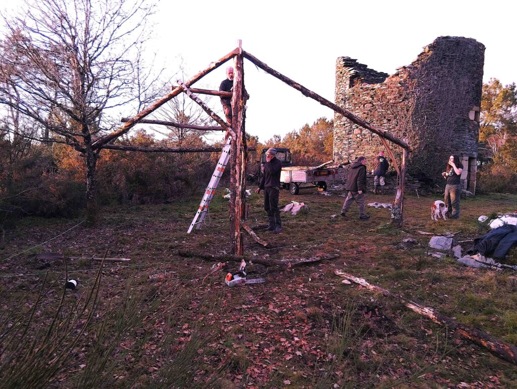 L’association a entrepris la construction d’un abri de chantier pour offrir aux participants la possibilité de s’abriter pendant les travaux si les conditions météorologiques l’imposaient.